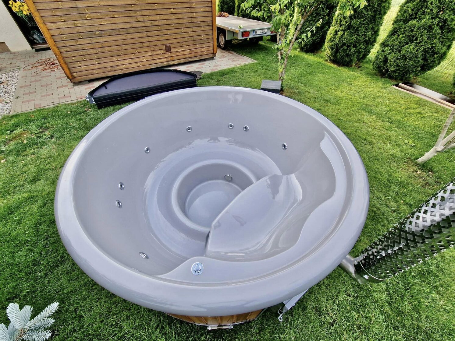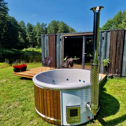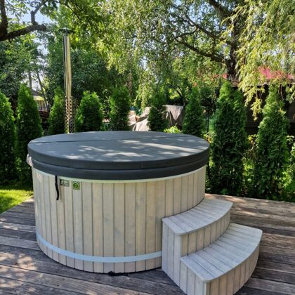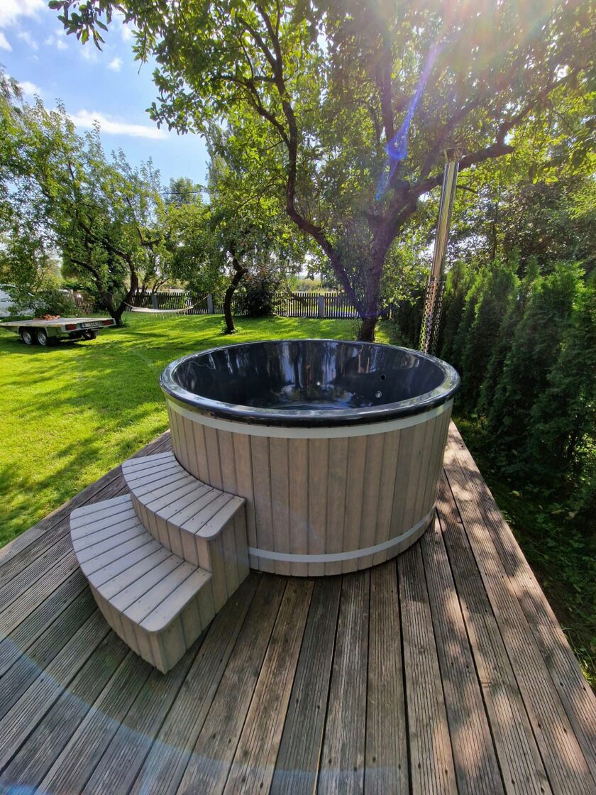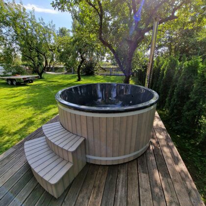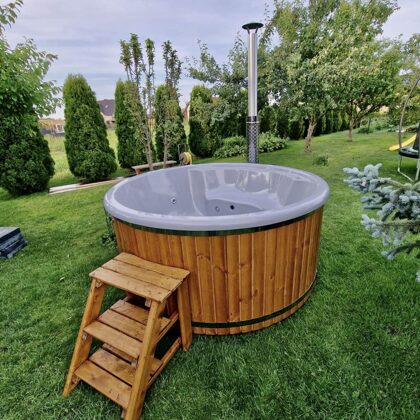 The tub is perfectly suited for fully immersing yourself in the beauty of nature. You can enjoy the fresh air, sunsets or sunrises right from your own garden or yard. It is a place to relax and enjoy the gifts of nature.