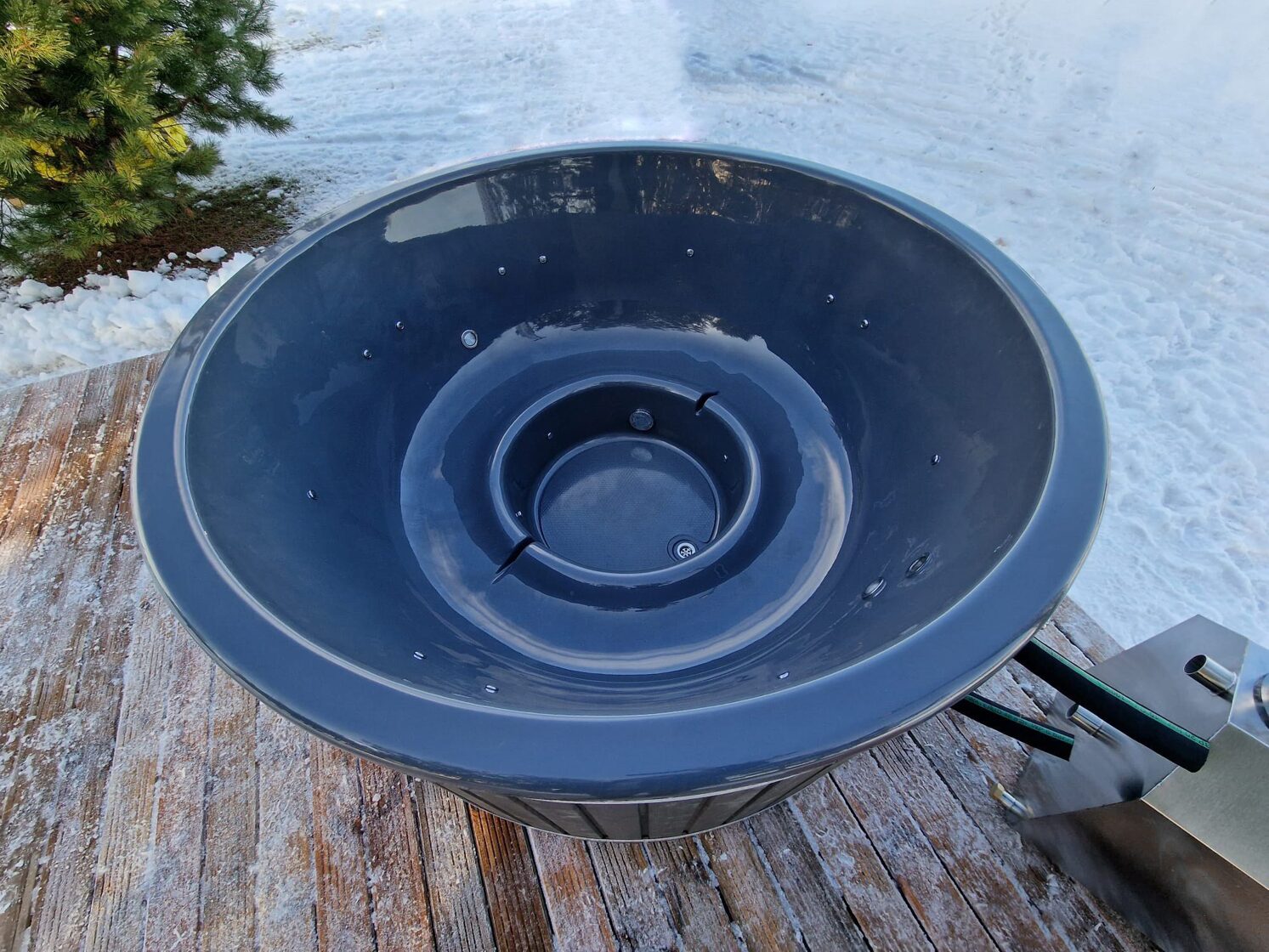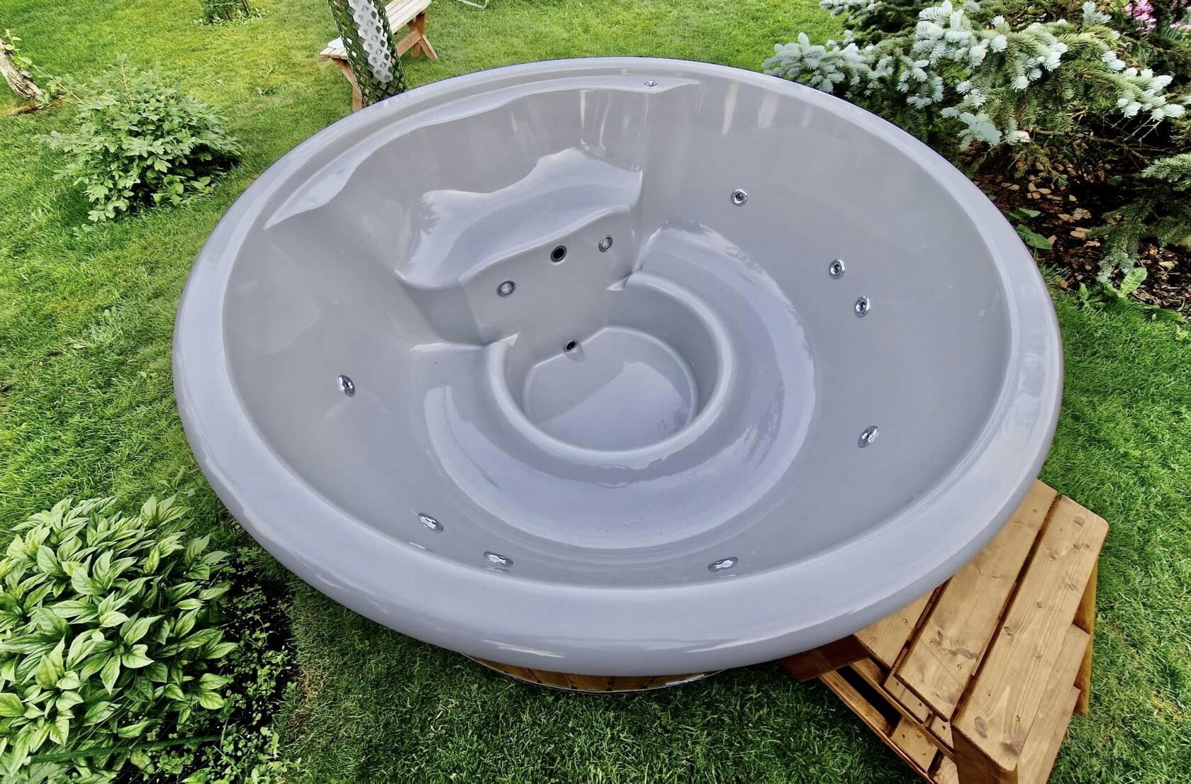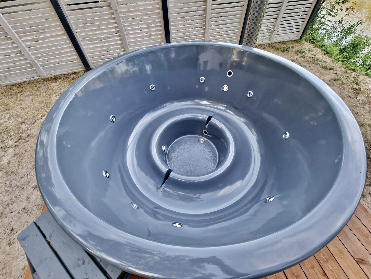 The tub is perfectly suited for fully immersing yourself in the beauty of nature. You can enjoy the fresh air, sunsets or sunrises right from your own garden or yard. It is a place to relax and enjoy the gifts of nature.
